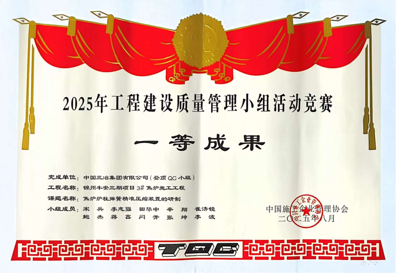 與往年相比,中國三冶今年獲獎數據實現多項突破:一等獎數量同比增長33.33%,二等獎增長50%,創新型成果更是翻倍至4項,增幅達100%。其中,工業工程公司"焦爐爐柱彈簧精準壓縮裝置的研制"成果,不僅以遼寧省綜合評分第一名的成績斬獲"最佳發布獎",更通過將彈簧壓縮精度控制在"±1mm"的嚴苛標準內,為同業同類工程提供了可復制的精準質量管控方案。這正是中國三冶質量管理從"解決問題"向"創造標準"轉型升級的生動體現。